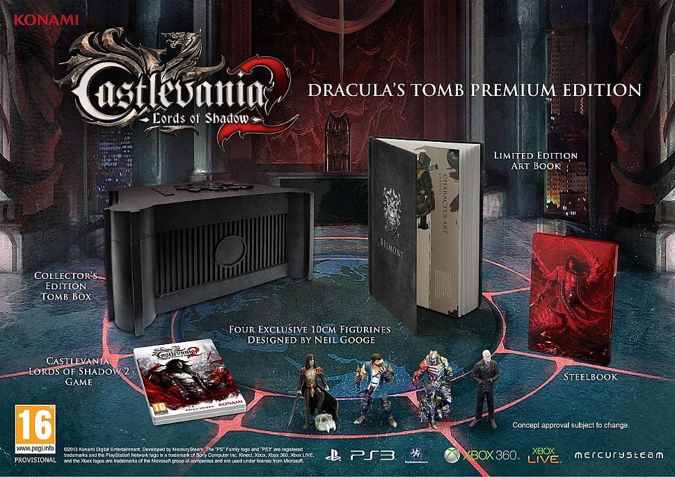 Konami, ha ufficialmente annunciato e svelato, le edizioni speciali di Csatlevania Lords of Shadow 2. La prima edizione denominata Dracula’s Tomb Premium Edition, è quella che analizzeremo in questo articolo, e potete ammirarla in tutto il suo splendore, nella foto riportata in alto, la seconda edizione è una semplice steel book dedicata a Dracula.