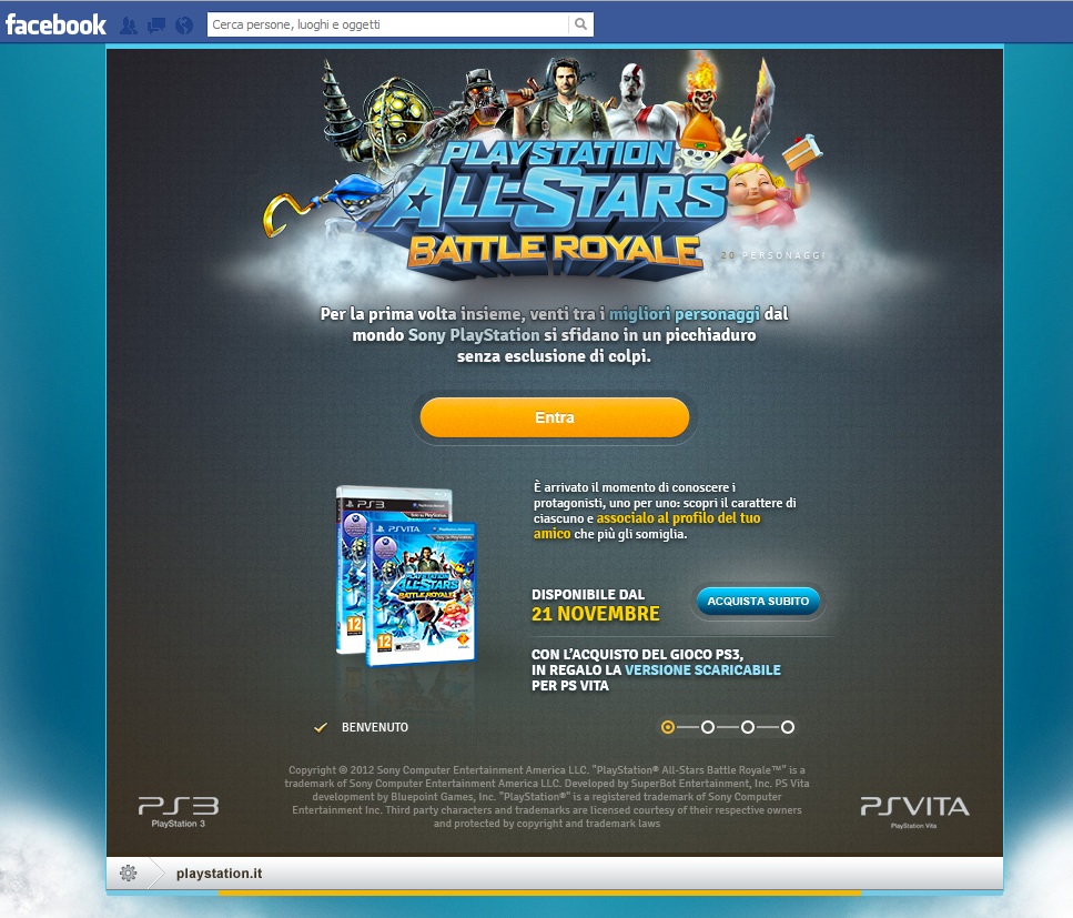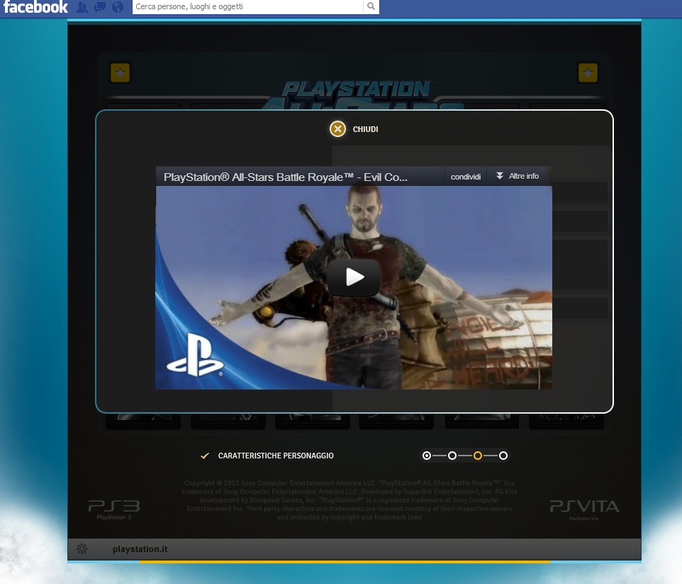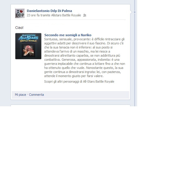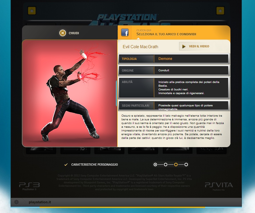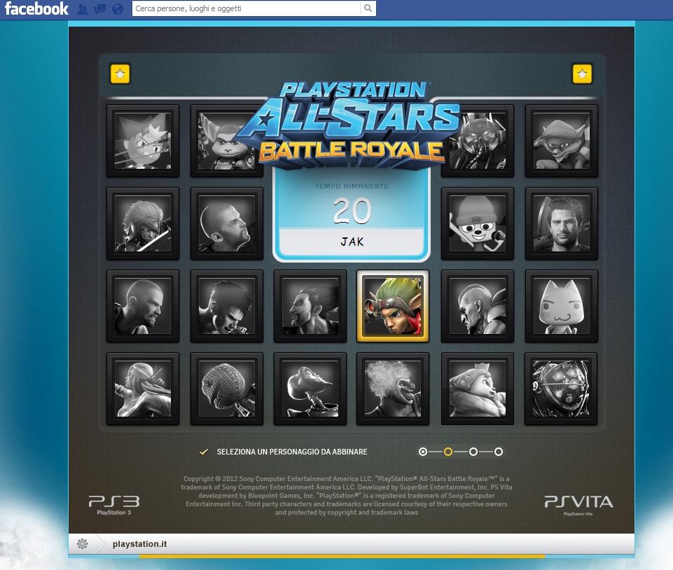 All Stars Battle Royale di PlayStation è uno dei primi titoli a vantare il cross play tra PS3 e PSVITA e viceversa. Il cross play se non lo sapete, è una funzione che permette di sfidare da una console i giocatori presenti su un altra console. Altra interessante iniziativa realizzata da Sony per lanciare il gioco, è un’applicazione su “Facebook”, app molto simpatica che permette agli utenti di associare gli amici presenti in lista ad un differente personaggio del mondo PlayStation.
